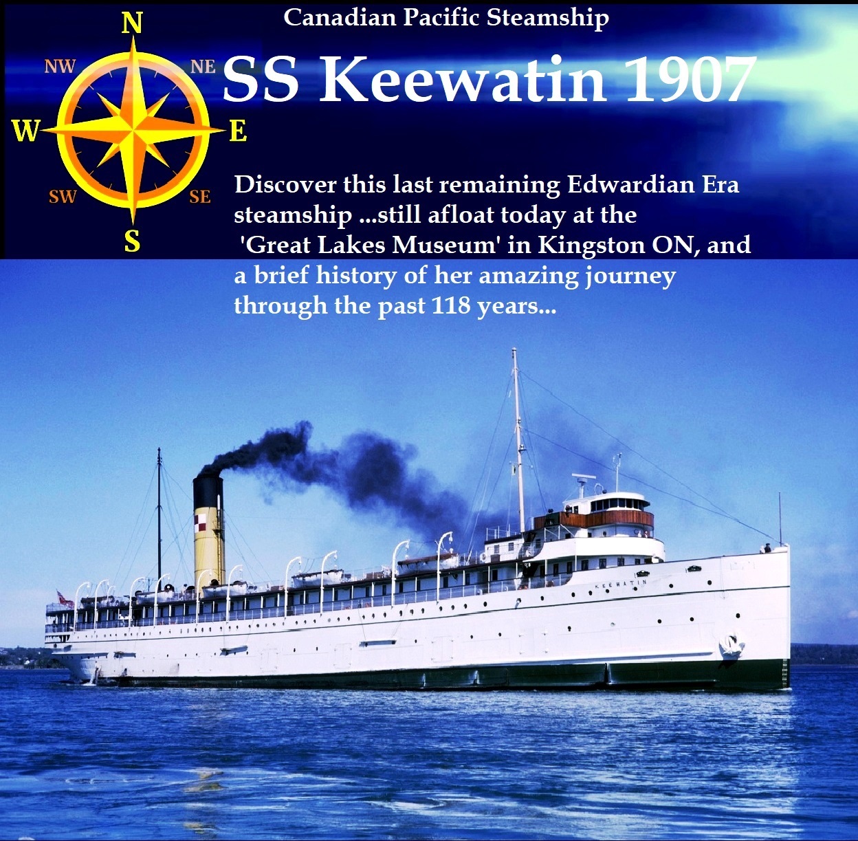 Also showcased on this site is documentation regarding our museum ship, SS Keewatin… now located here in Kingston Ontario, at the ‘Great Lakes Museum’… with particular focus on Canada’s early radio communication on the Great Lakes.