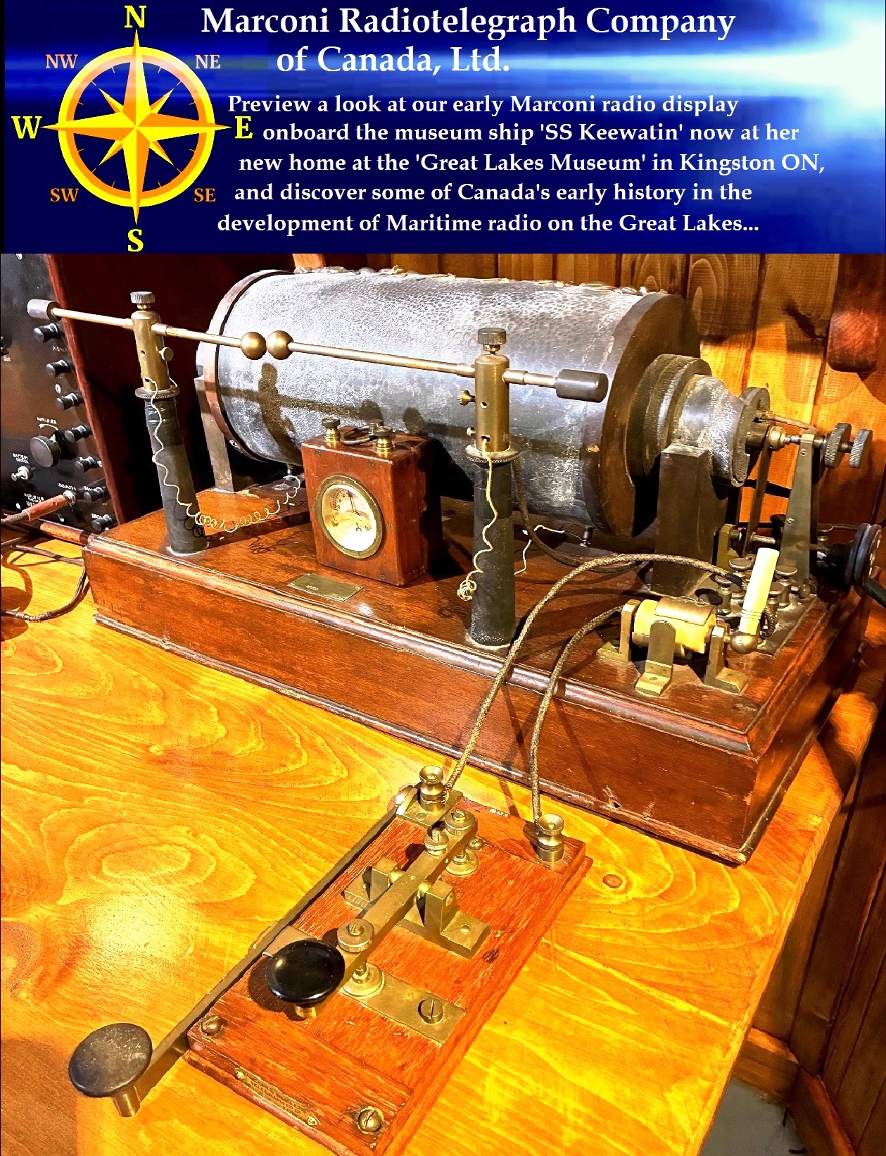 About this website and its’ author…As a registered volunteer at Kingston’s ‘Great Lakes Museum’ and an Advanced Amateur Radio operator. I was priviledged to be assigned the task of esatblishing both the Amateur Radio station VA3VGC onboard SS Keewatin, as well as staging a wonderful display of early Marconi radio equipment gifted to Great Lakes Museum by the Toronto Maritime Museum archives. So this website showcases not only my lifetime fascination with the world of Amateur Radio, but also some of the very earliest of Marconi’s radio technology as part of Canada’s heritage in the development of radiotelegraph communication on the Great Lakes.