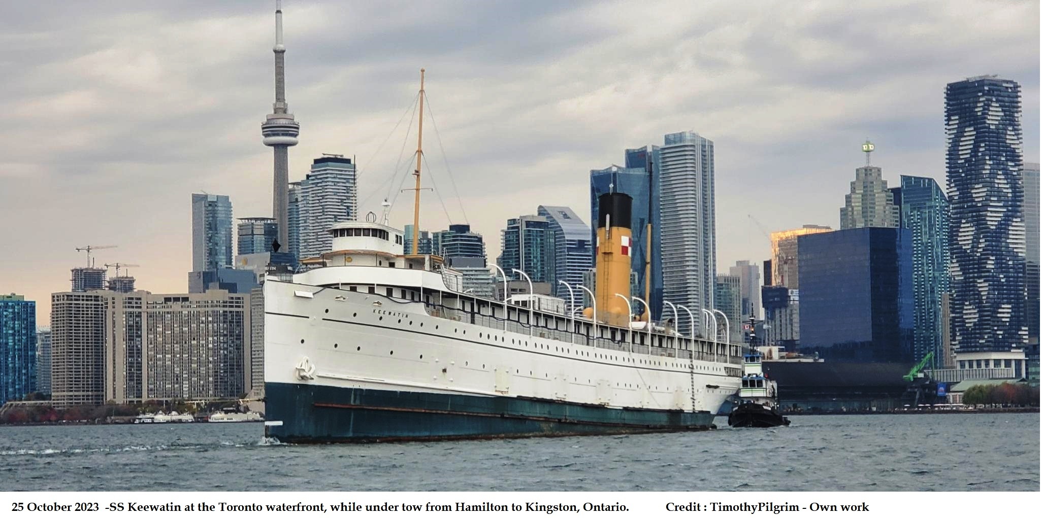 - SS Keewatin towed in to Hamilton Harbour … A historic Great Lakes passenger ship that was once the link between Canadian Pacific Rail lines was towed through the Burlington Canal into Hamilton Harbour Saturday, delighting onlookers. … to Heddle Marine in the harbour where it will undergo a $2-million retrofit. … Following the retrofit, the ship will be moved to the Marine Museum of the Great Lakes at Kingston. The attraction is set reopen in 2024. The Hamilton Spectator, April 30, 2023.